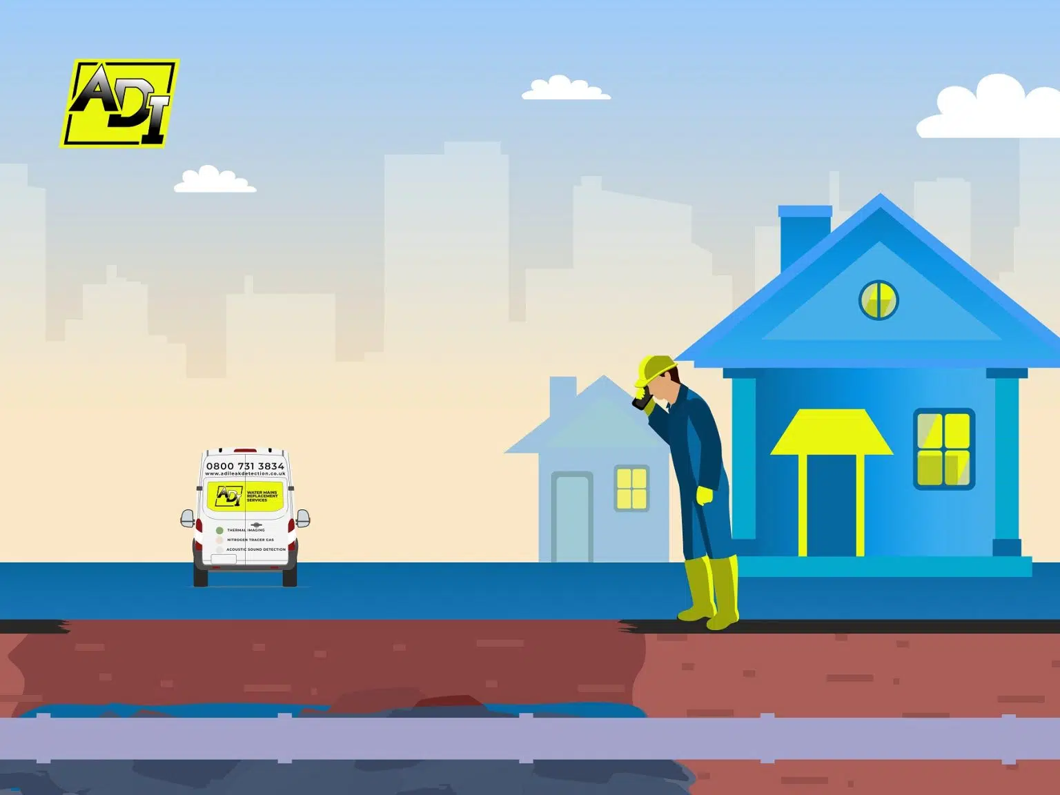 If you need a professional CCTV Drain survey completed, by a company that is an acknowledged leader in the market, and who cares about the customer service they provide then there is only one company to call ADI Water Leak Detection. Call us today on 0800 731 3843 to book a free no obligation quotation. It could be one of the most beneficial calls you ever make.